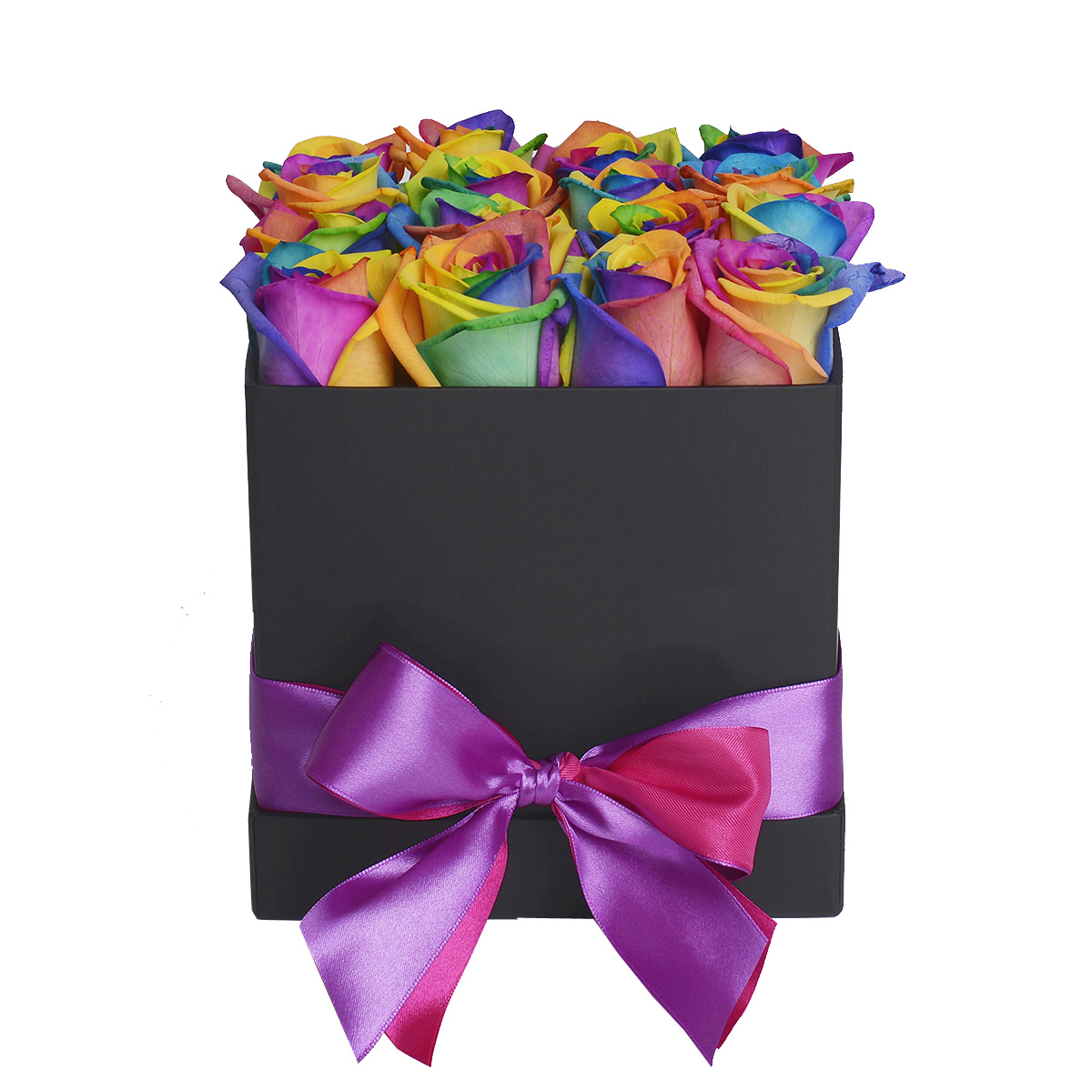 Цветы в коробке «Радужные Розы» с доставкой по г Благовещенск (Башкортостан): вы можете купить букет в гипермаркете цветов «Флормания» по цене от 2590 руб.
